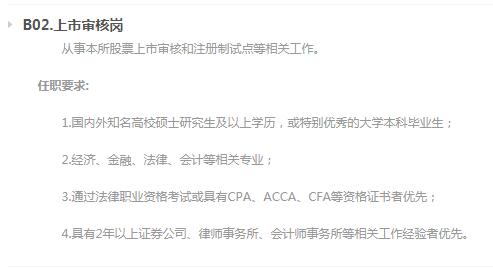 市場監(jiān)管崗,主要從事本所主板和科創(chuàng)板上市公司監(jiān)管、現(xiàn)場檢查、會員監(jiān)管、市場監(jiān)察、法律支持等相關(guān)工作。上市審核崗,主要從事本所股票上市審核和注冊制試點等相關(guān)工作。