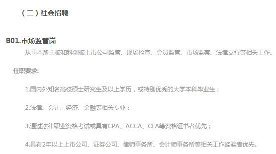 上交所發(fā)布招聘啟事:招募科創(chuàng)板和注冊制人才